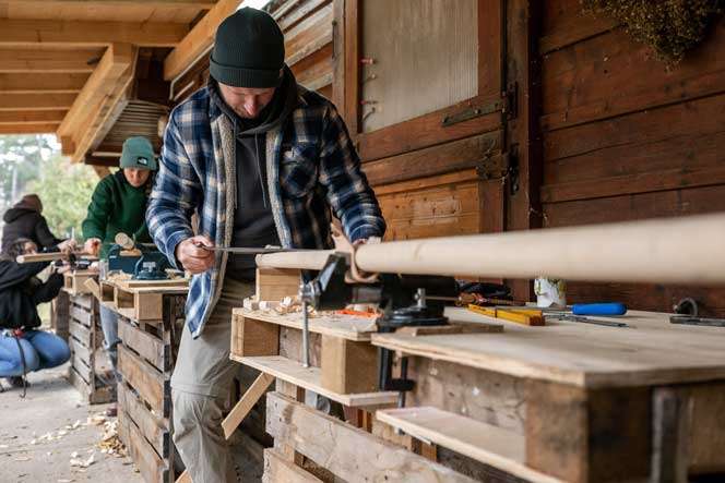 In den Kursen kannst du selbst deine Erfahrung beim Schnitz-Handwerk machen.